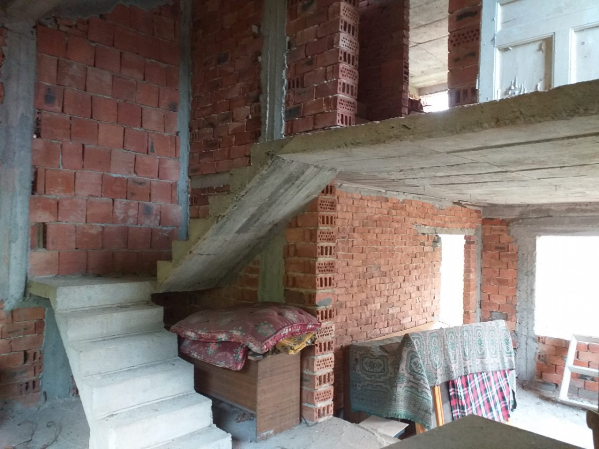 Къщата е на калкан (близнак)с два входа, незавършен на груб строеж. Идеална е за две семейства.