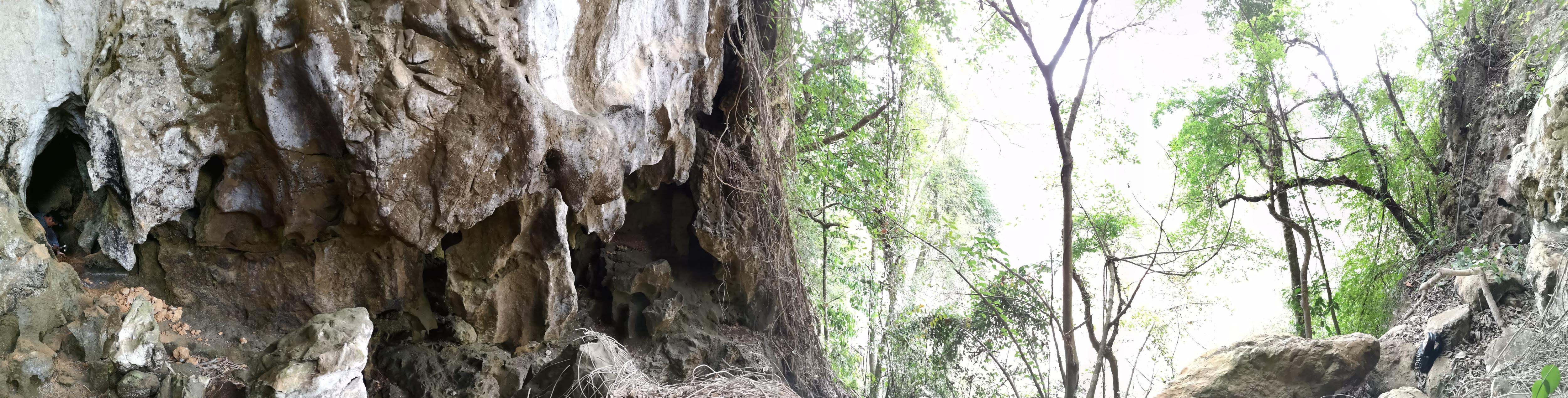 Панорамна гледка към пещерата Ngu Hao 2 в Северен Лаос. Входът на пещерата е отляво. Кредит: F. Demeter