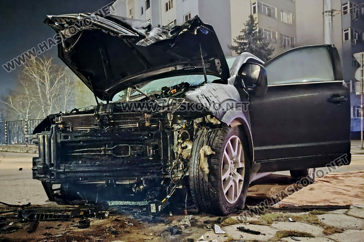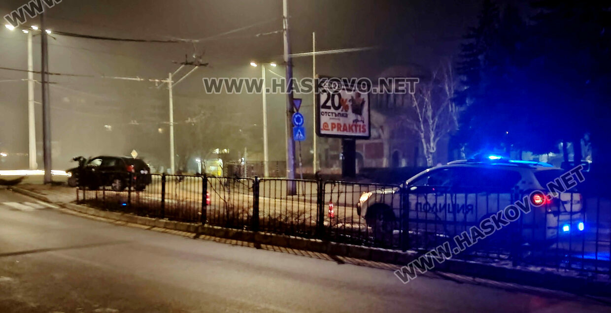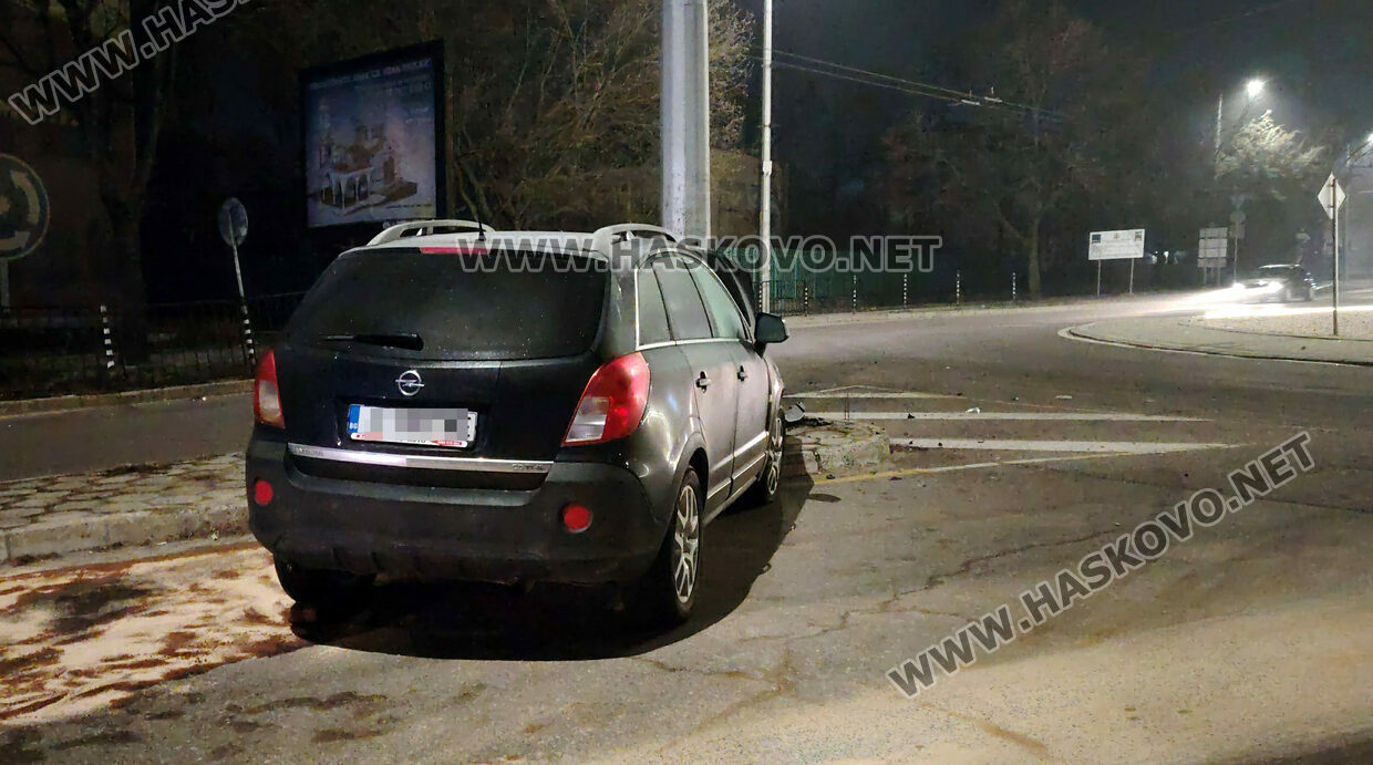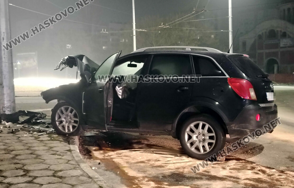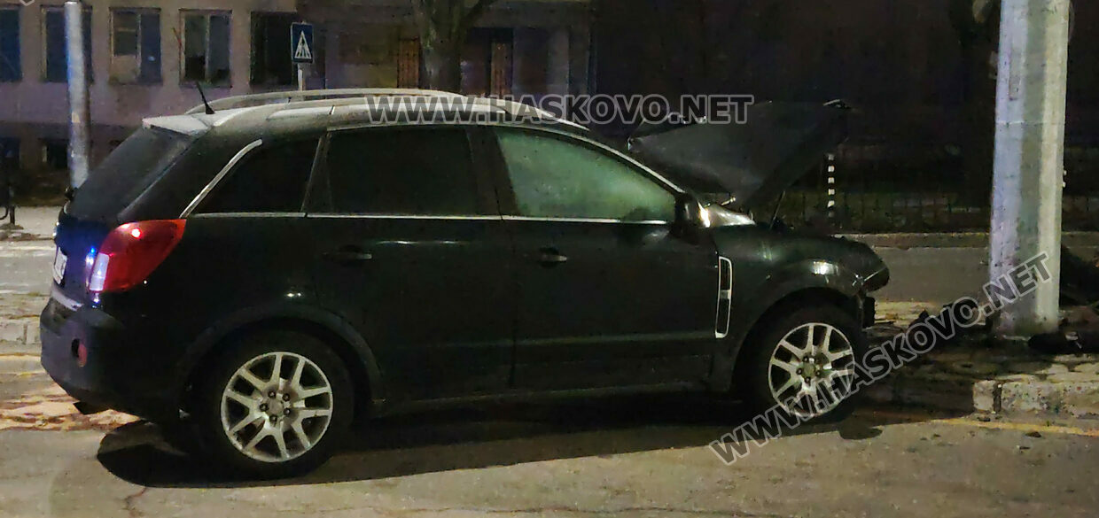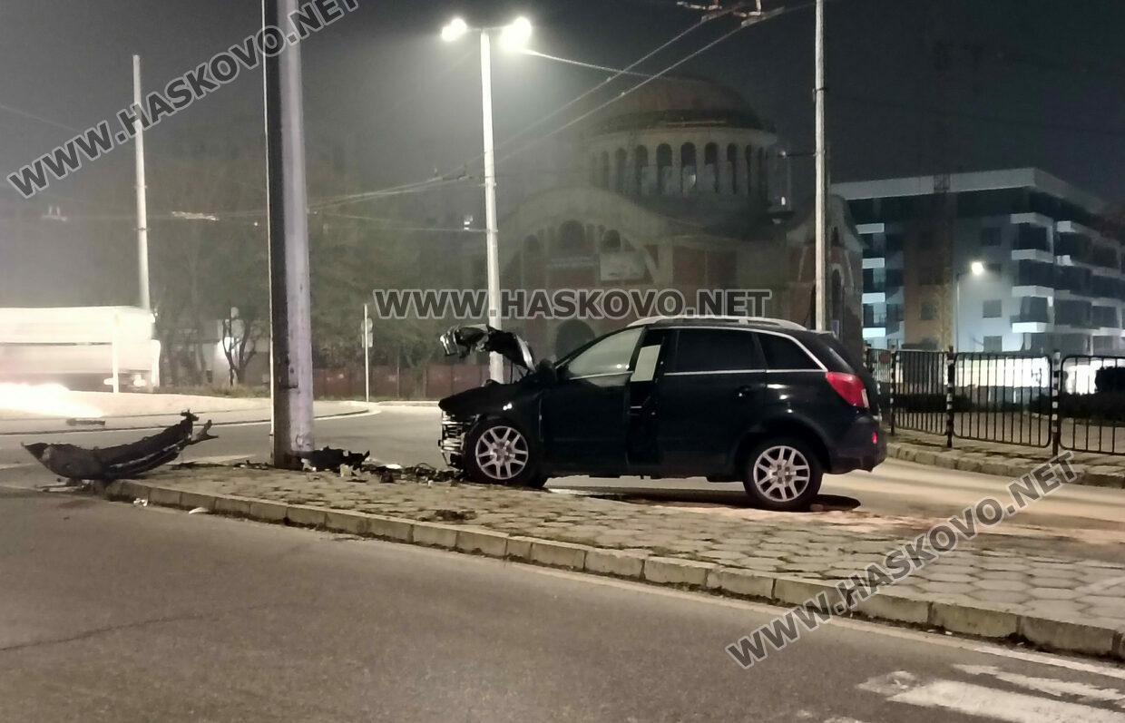 Късно снощи на кръговото кръстовище на бул. „Раковски“ с ул. „Ком“  в Хасково пиян водач на „Опел Антара“ загубил контрол над колата и се забил челно в уличен стълб. Шофьорът е бил сам в колата.