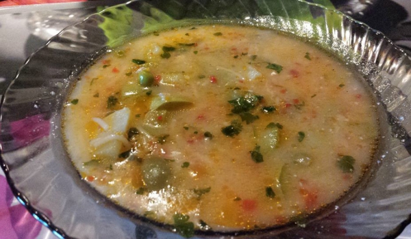 Зеленчуците се почистват и нарязват на ситно. Варят се докато омекнат. Към сместа се добавят доматите. Супата се застройва с яйце и кисело мляко. Така получената смес се оставя да поври още малко....