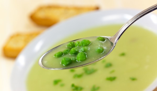 Поставяме добре измитите телешки кости и граха във вряща подсолена вода и варим, докато грахът омекне. От маслото и брашното правим светла запръжка, добавяме червения пипер, заливаме с костен бульон...