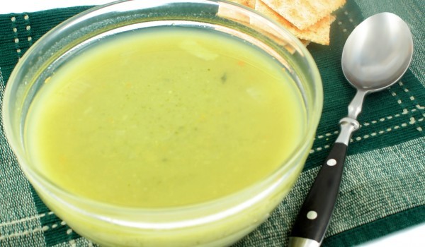 Изчистете, обелете и нарежете всички зеленчуци по отделно. В затопления бульон прибавете лука и морковите. Оставете да ври 5 минути и прибавете зеления фасул. След още 5 минути прибавете праза и грах...