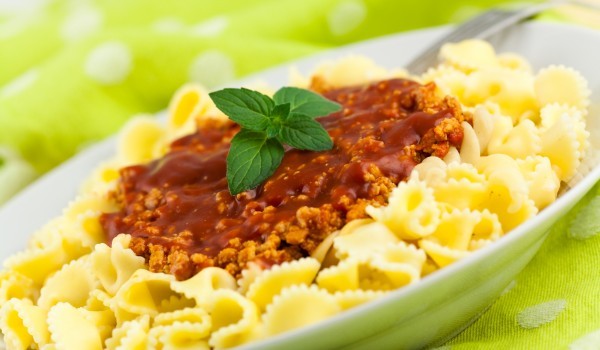 Накълцайте лука и го задушете в мазнина, след което добавете и доматеното пюре. През това време сварете и отцедете макароните. Към лука и пюрето прибавете каймата и задушавайте до готовност, като към...