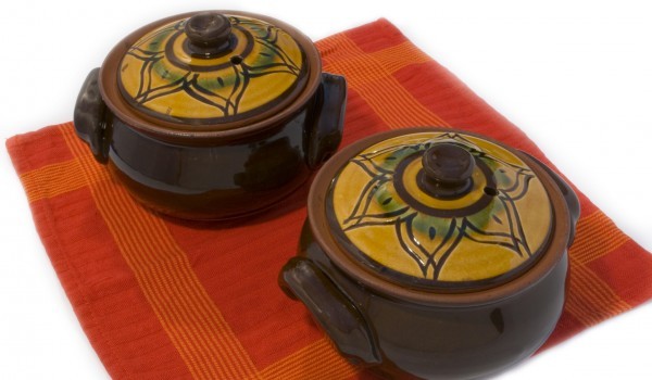 Спагетите се сваряват в подсолена вода за 10 - 15 минути, отцеждат се и се разбъркват с маслото, малко сол, черен пипер. Изсипват се в гювечетата, добавя се натрошеното сирене, нарязаните на парченца...