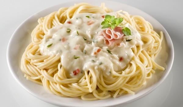 Сваряваме пастата в подсолена вода и отцеждаме. В тиган запържваме бекона и гъбите. Доливаме сметаната и смесваме с пастата. Отгоре наръсваме пармезана. Някои слагат и суров жълтък, но аз лично съм пр...