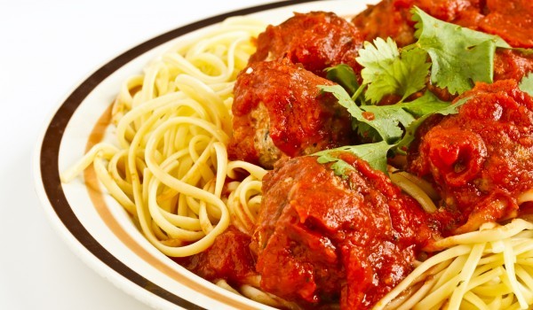 Сварете спагетите в подсолена вода. Разбъркайте каймата с яйцето, натрошеното сирене и хляба, предварително накиснат в млякото и после отцеден. Овкусете със сол, черен пипер на вкус и нарязания магдан...
