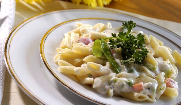 Сварете макароните в подсолена вода. Отцедете ги и ги разбъркайте с маслото и настъргания кашкавал. Запържете в мазнина 2 с.л. брашно с 2 с.л. масло и ги разредете с прясното мляко. Оставете соса да п...