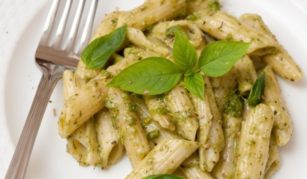 Сложете кедровите ядки и орехите да се запекат на сух тиган, докато започнат да ухаята. Накълцайте леко чесъна и магданоза и накъсайте на малко по-ситно босилековите и спаначените листа. Сложете в ку...