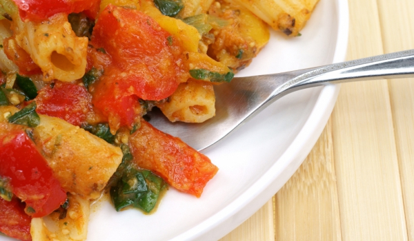 Нагрейте зехтина в средно голяма тенджера на среден огън. Добавете лука и пържете до златен цвят с разбъркване около 20 минути. Добавете чесъна и леко сотирайте за около минута. Добавете спанака, дом...