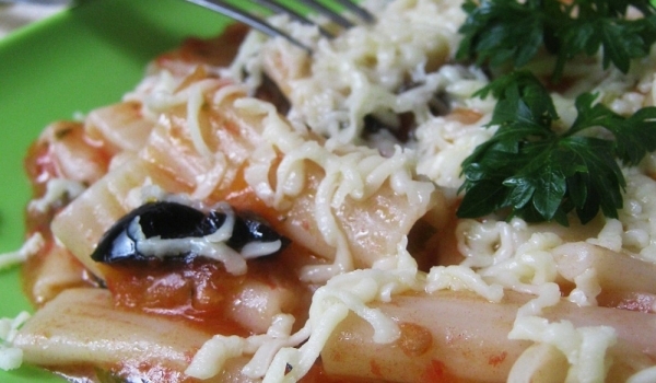 Накълцайте дребно пилешкото и сложете да се свари за 10 минути. За доматения сос задушете накълцаните лук и чесън за няколко минути в зехтина. Добавете доматите и овкусете със сол и захар. Доварете с...