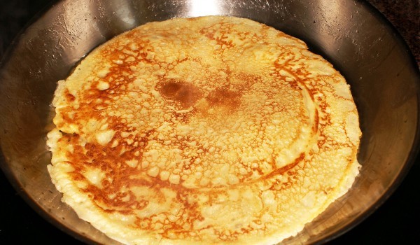 Загрейте олио в тиган. Разбийте яйцата с прясното мляко, брашното, прибавете содата, солта, черния и червен пипер. Разбъркайте добре и излейте омлета в горещата мазнина. Изпържете го леко от едната с...