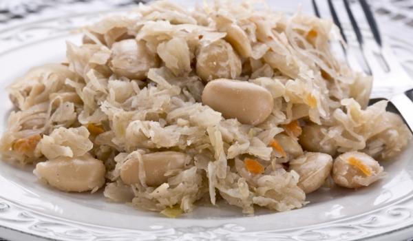 Накисвате боба за една нощ в студена вода. На другия ден го отцеждате и го сварявате в леко подсолена вода, към която прибавяте 1-2 с.л. олио. В останалото олио задушавате ситно нарязаните лук и зеле....