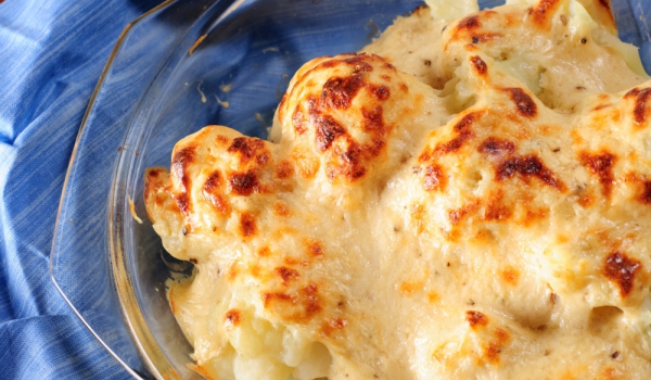 Карфиолът се накъсва на малки розички и се измива добре. Задушава се в подсолена вода, в която се сипва и олиото. Когато карфиолът се задуши се изважда и изцежда. Млякото се разбива и в него се слага...
