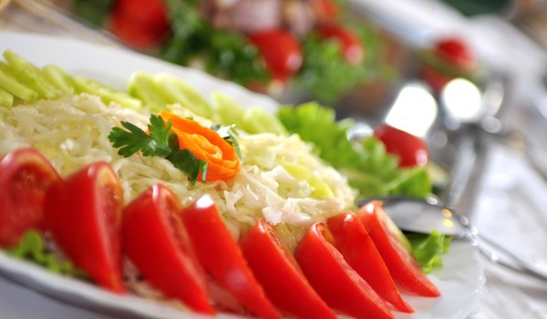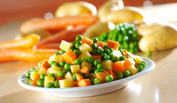 Почистете камбите от семената и ги нарежете на четири. Нарежете морковите на кръгчета, а алабаша на кубчета. Накъсайте карфиола на розички. Целината се реже на ивички, а листата ѝ - на едро. Смесете...
