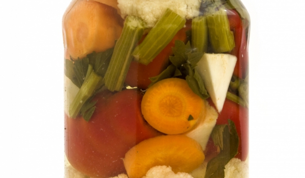 Подберете зеленчуци в количества по ваш вкус. Почистете ги и по желание ги нарежете едро. Подредете ги в бидона и добавете по 30-40 г сол на 1 кг зеленчук. Долейте вода догоре на бидона и затворете....