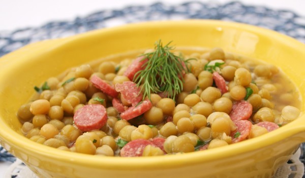 В голяма тенджера се загряват 2 - 3 с л зехтин след което се прибавя салама нарязан на дребно и запържва няколко минути. Добавят се ситно нарязаните лука, чесънът и целината. Тенджерата се похлупва...