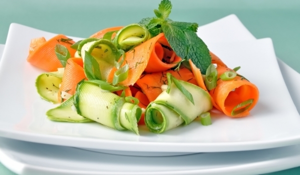Прошутото и моцарелата се режат на кубчета, наденичките на колелца, маслините на половинки, доматите се белят и режат на резени, а чушките на ивички. Смесват се със сварената според указанията на опа...
