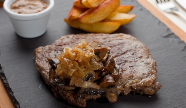 Загрейте сача, като го намазните с половината мас. Сложете в него начуканите и овкусени със сол и черен пипер пържоли. Изпечете до готовност от двете страни и извадете месото. Сложете в сача останала...