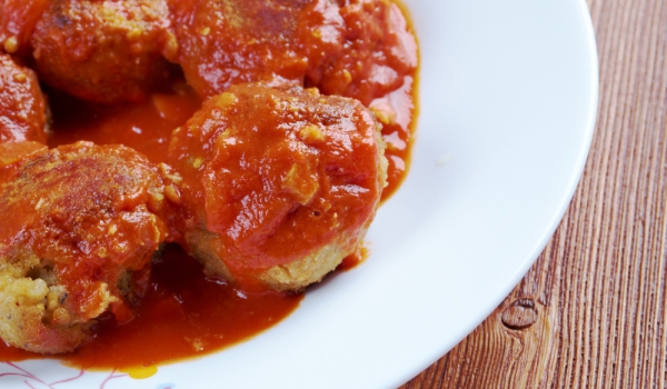 Лукът се реже на ситно и се запържва. Рибата се смила. Добавя се солта, черният пипер, яйцето и пърженият лук. Оформят се малки топчета и се слагат в дълбока тава. Заливат се с доматения сок и се пек...