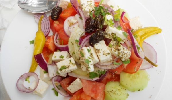 1. Нарежете доматите на парченца, краставиците - на кръгчета и посолете нарязаните зеленчуци. 2. Добавете нарязаните на тънки полумесеци или кръгчета лук и чушка. 3. Поръсете щедро риган, по желание...