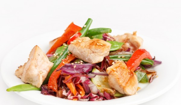 Пилешкото се нарязва на по-едри късове. Маринова се за 30 минути в смес от соевия сос, оризовия оцет, сусамовото олио, захарта, горчицата, след което добре се отцежда за 10 минути от соса. Месото се...