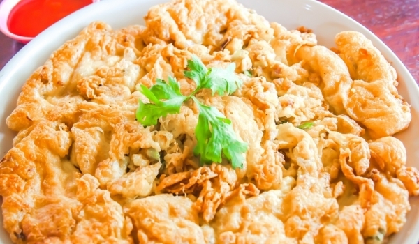 Загрейте мазнината, добавете нарязаното на кубчета тофу и запържете за 5 минути до златисто. Разбийте добре яйцата със соевия сос и ги изсипете при тофуто. Пържете омлета 4-5 минути, като леко разбърк...