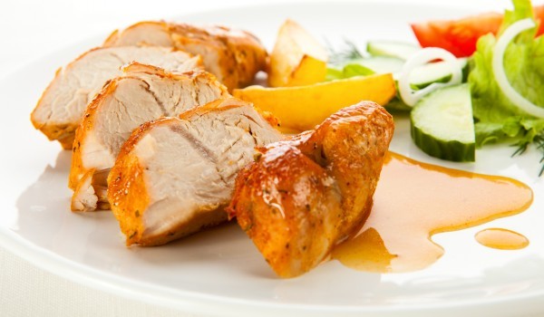 Чесънът се счуква и се смесва със соевия сос, прибавя се малко сол на вкус, но не прекалявайте, защото соевия сос също е солен. Нарежете пилешкото месо на филенца, след което ги залейте със соевия со...