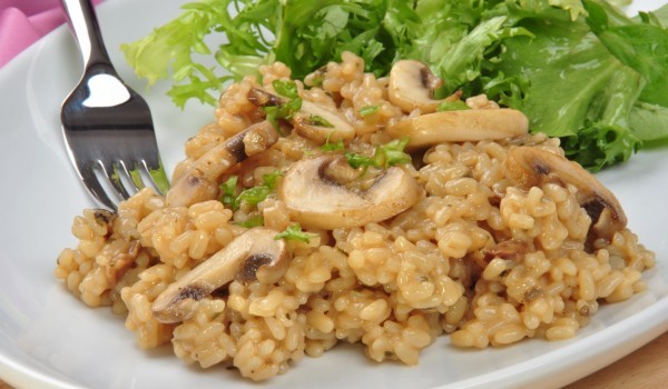 Ориза се накисва с водата и се измива добре, след това се слага в тава заедно със стафидите, и изпържените предварително гъби, маслото и малко сол. Пече Сервира се с копър.