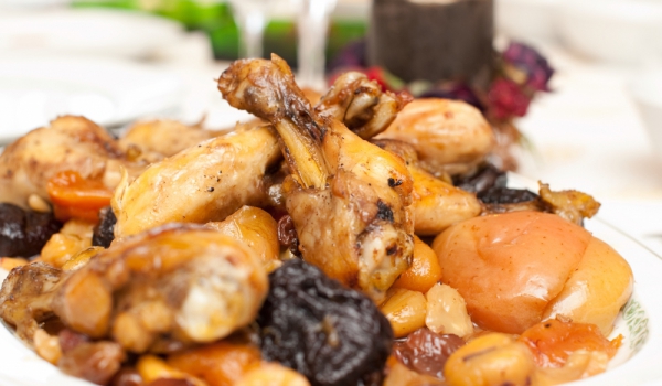 Половината зърна от нар се намачкват леко до отделянето на сок. В месото се правят разрези и се запълват със зърната от нар заедно със сока. Месото се поръсва със сол, черен пипер и намачкана мента....