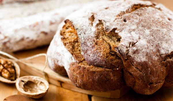 Пресейте брашното в дълбока купа и към него добавете натрошените орехи, шупналата в половината топличко мляко със захарта мая, останалото мляко, лъжица зехтин. Постепенно добавяйте от брашното със сол...