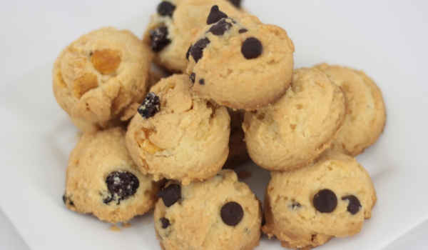 Корнфлейксът се намачква, добавят се смлените орехи и бакпулверът. Белтъците се бият със захарта и се добавят в царевичната смес. Добавя се ванилията, всичко се разбърква и с чаена лъжичка се оформят...