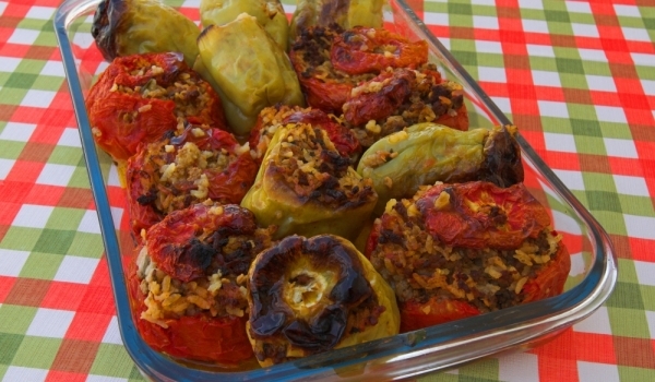 Чушките се измиват и изтърбушват. В 100 мл олио се запържва скълцания лук, след което се добавя измитият ориз, 2-3 нарязани дребно домата и гъбите. Добре се разбърква и след като се запържи, се долива...