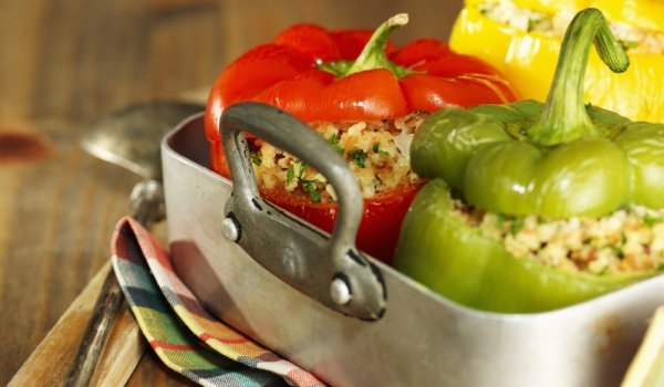 Измийте чушките и ги почистете от семенната част. Посолете ги леко отвътре. Загрейте олиото и запържете ситно нарязаните лук, целина и моркови. Когато поомекнат добавете ориза и запържете с него. Въ...