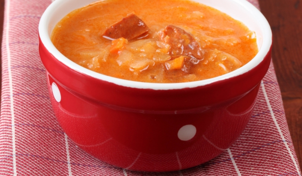 Нарежете патладжаните на големи кубчета. Посолете ги и ги оставете да се отцедят от горчилката. Изпържете в горещо олио. В същата мазнина изпържете нарязания на ситно лук, добавете брашното, червения...