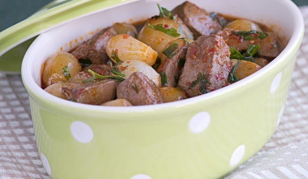 Нарязвате и задушавате лука. Картофите задушавате в маслото. След 10 минути прибавяте заедно с препеченото брашно при лука. Овкусявате със сол и магданоз и заливате с гореща вода. Сипвате в тава и...
